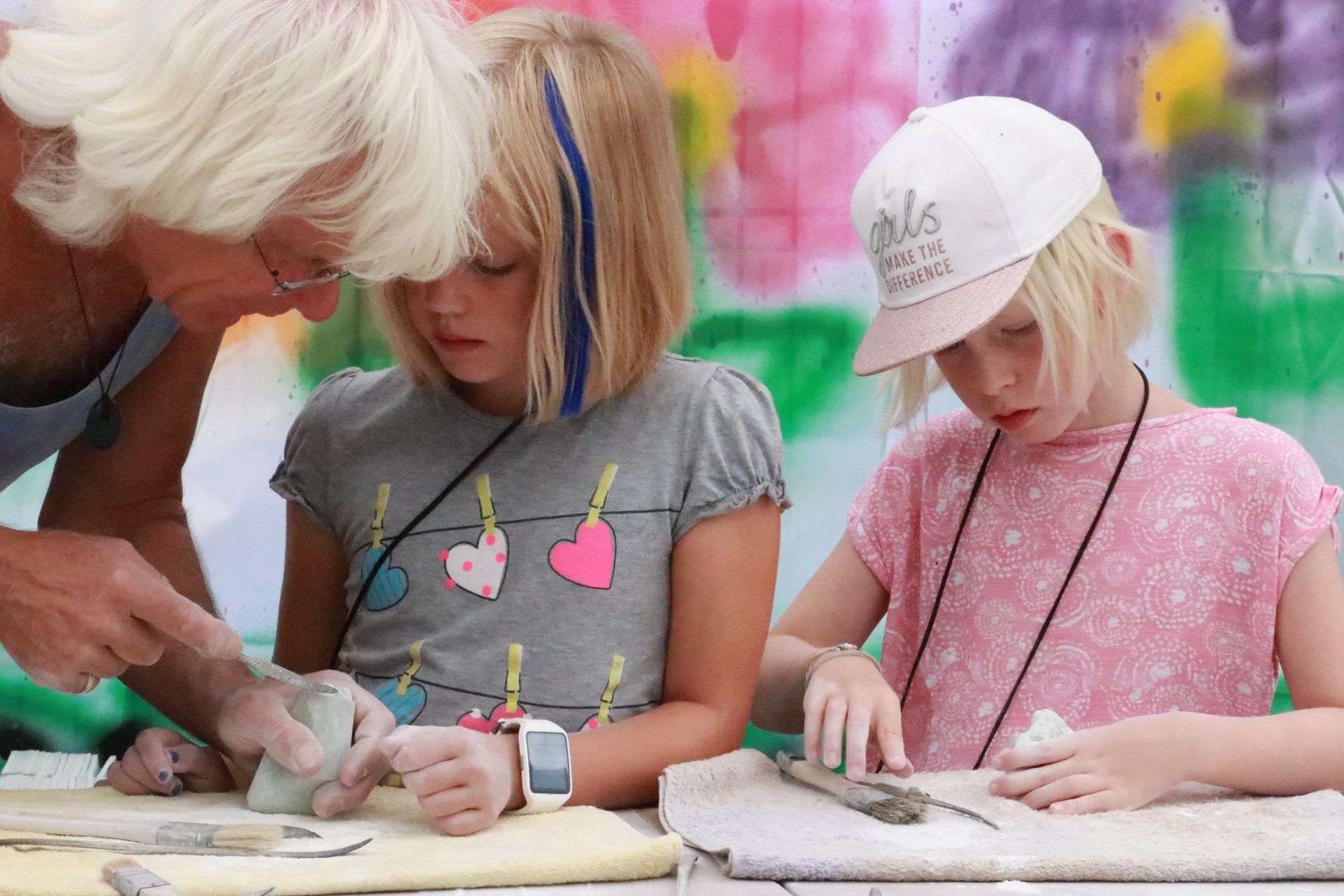 Jede Werkstatt wird von einer erfahrenen Person geleitet. Zusätzlich arbeiten noch Helfer*innen in den Werkstätten mit.